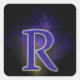 Os adesivos encontraram a letra R. Leuk als je naam met de R begint de die van een ander. Achter de carta é een raster en mysterieuze wolken conheceu até o licht die erop schijnt. A letra R foi encontrada até a patrulha de xadrez em en een grijze rand erom heen. kleuren blauw, paars, geel en zwart.