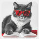 Livro de Leitura de Gato Cor Seletiva Cor Vermelha Abertura de Cor