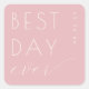 This design captures the essence of a joyous celebration with its elegant and minimalist style, perfect for wedding stickers. The soft pink background paired with clean typography creates a romantic and sophisticated mood, ideal for marking special moments like anniversaries or weddings. The phrase "Best Day Ever" adds a touch of heartfelt sentimentality, making it an excellent choice to commemorate unforgettable occasions. Its simple yet stylish aesthetic ensures versatility in various settings, from invitations to decorations, allowing you to personalize your event with grace and charm.