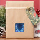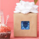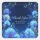Add a touch of celestial magic to your correspondence with this elegant floral thank you sticker. The design features a deep, starry navy blue background, creating a stunning canvas for a beautiful frame of glowing blue flowers. Luminous blue hydrangeas, appearing lit from within, are artfully woven with delicate, fine-lined gold leaves and deep blue foliage. The entire scene is dusted with a magical spray of blue and white glitter, like distant stars, adding to the enchanted, celestial feel. A minimalist, thin gold square frame is perfectly centered, providing a sophisticated border. These stickers are perfect for businesses that want to add a touch of sophisticated magic, such as astrologers or tarot readers to seal readings, boutique candle makers for luxury packaging, event planners for celestial-themed weddings, or fantasy authors for book mail. This versatile design can also be used to beautifully seal envelopes for weddings, galas, or milestone birthdays, or as a sophisticated accent on party favors.