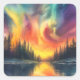 Adesivo Quadrado Luzes do Norte no Lago com Estrelas