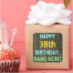 Este design de autocolante de aniversários divertido apresenta uma mensagem como "FELIZ 38º ANIVERSÁRIO, NOME AQUI!", onde o nome pode ser personalizado. O fundo apresenta um padrão de aparência rústico, castanho e falso em grãos de madeira. O texto de mensagem personalizável apresenta cores como azul, amarelo e verde, e tem uma aparência inspirada pela de letras pintadas e estêncilhadas. Os adesivos como estes poderiam talvez ser dados como presente, ou talvez usados como decorações numa festa de aniversário para alguém que comemora os seus trinta e oito anos de aniversário. [~Z0000296]