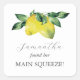 These "she found her main squeeze" bridal shower favor stickers are designed using hand painted watercolor lemon art by Victoria Grigaliunas of Do Tell A Belle. Use the template field to add the bride-to-be's name in trendy script typography. See the matching lemon bridal shower theme for summer at https://www.zazzle.com/collections/lemon_themed_bridal_shower-119857687314456758