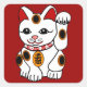 Adesivo Quadrado Maneki Neko Cat no Fundo Vermelho