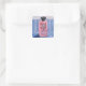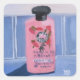 Impressão de arte de uma garrafa de xampu rosa em azulejo azul.