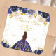 Este elegante e glamouroso obrigado Quinceañera que você cola apresenta uma bela princesa com cabelo escuro em um vestido azul de tiara e marinho. O texto combina o script manuscrito e as fontes sans serif modernas para um aspecto elegante e sofisticado. Os arranjos florais e o confete de ouro criam a mistura perfeita de rústicos e quicos. Gráficos por www.etsy.com/uk/shop/SunflowerDayLove