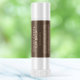 Esta etiqueta apresenta um estilo moderno com texto brando sobre fundo castanho.