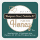 Rótulo de mel moderno em fundo verde de cor joia com "Honey" escrito em Vintage estilizado.