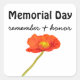 Memorial Day Red Poppy Square Sticker apresenta um fecho de flor vermelha de papoila e um modelo de texto.Um design perfeito para o dia de memória ou para qualquer projeto escolar.Clique no botão personalizar para personalizá-lo com seu texto ou nome.Visite gentilmente minha loja " https://www.zazzle.com/store/loveyouart" ( copie e cole o link) para outros designs ou similares.