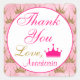 Menina e bonito, rosa e princesa reluzente do ouro coroam o adesivo quadrado "Obrigado". Este adesivo de vidro também apresenta uma coroa/tiara princesa rosa-quente e um elegante escrevendo rosa-quente. Você pode adicionar facilmente o nome de sua escolha e alterar a cor e a fonte usando a opção personalizar!