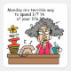 As segundas são uma maneira terrível de passar 1/7 da sua vida! Camisas de segunda-feira engraçadas, cartões, adesivos, sacos de tote, ímãs, chaveiros, revistas, relógios de parede, travesseiros e muito mais que pode ser apreciado por qualquer um que trabalhe e não goste de segunda-feira!