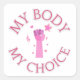 Mostre o seu apoio aos direitos das mulheres com este design de autocolante pró-escolha, com um punho cor-de-rosa no centro com o texto "meu corpo minha escolha".
