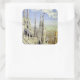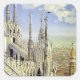 Imagem de encerramento de um poster de viagens italiano vintage para Milano, mostrando a linha de telhado gótica da Catedral de Milão.
