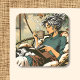 Adesivo Quadrado Moça Louca Lendo com Café e Gato