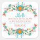 Ferida floral retrógrada colorida sobre cor de fundo personalizável branca. Coral e flores turquesas com sotaques amarelos. Modelo do adesivo design de casamento para salvar a data. Se precisar de ajuda para personalizar qualquer design do ArtOnWear, entre em contato com o designer do ArtOnWear clicando no botão Perguntar a este Designer. O botão está na imagem do produto e nas informações. Formatação de texto livre com ajuda ao vivo disponível por solicitação.