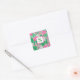 Adesivo Quadrado Monograma de Flores Tropicais Cor-de-Rosa Verde