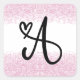 Adesivo Quadrado Monograma - letra A com brilho rosa escovado