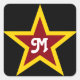 Adesivo Quadrado Monograma Personalizado Simples de Estrela Vermelh