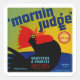 Etiqueta de caixa de fruta para a marca "Morning Juiz" da toranja e laranjas do Texas.