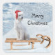 White Poodle em um trenó em um fundo de neve vestindo um cachorro do Papai Noel ama um adesivo de Natal