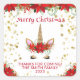 Adesivo Quadrado Natal Poinsettia Unicorn com Favoritos para festas
