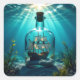 Adesivo Quadrado Navio em uma garrafa no oceano
