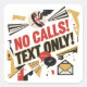 Let’s be real: if it isn't a 911 emergency, it probably could have been a text message. 📱 This is a bold graphic design featuring text reading 'No Calls! Text Only!' with a No-phone-call symbol, and a text with a checkmark symbol. The layout uses a striking color palette of red, black, and gold that demands attention.