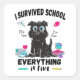 Engraçado design da escola com um cachorro estressado e a citação "Eu sobrevivi à escola, está tudo bem". Perfeito para o último dia da escola antes das férias de verão ou das férias de verão. Para estudantes e professores.