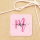 Adesivo Quadrado Nome de Monograma Menina Script Moderno Rosa Vibra