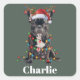 Adesivo Quadrado Nome Personalizado Cão-Bulldog Francês de Natal