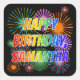Adesivo Quadrado Nome "SAMANTHA", Diversão "FELIZ ANIVERSÁRIO"