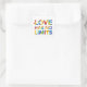 Esta design apresenta a frase "O amor não tem limites" formada em cores coloridas do arco-íris.