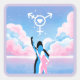 Silhuetas femininas estão sob um céu de algodão doce com um símbolo transgênero branco no céu como o sinal de morcego, ele tem um coração no meio.