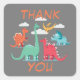 Obrigado Favor do Partido Dinossaur Square Sticker Este design adesivo apresenta dinossauros coloridos com as palavras "Obrigado". Visite nosso compro para coordenar acessórios.