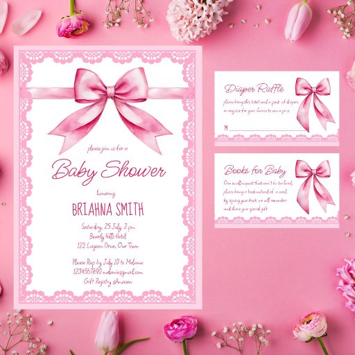 Pink bow retro lace baby showerCriado por Ieva Jenciute