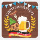 Festival de cerveja Oktoberfest com caneca de cerveja, pretzel, salsicha, faixa de fita com as cores da bandeira alemã, e bandeiras bávaras no topo para celebrar Oktoberfest no outono.