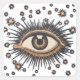 Art Nouveau Magic Eye and Stars - uma ilustração de um olho. Pessoas no início dos anos 1900 foram para o zodíaco e astrologia, e esta imagem de um olho cercado por estrelas é do tempo da mística e do romance. Criada para uma poster de 1911 para uma publicidade para uma exposição médica, esta imagem apresenta estrelas maravilhosas de Art Nouveau, um fundo azul escuro, e um olho muito grande com raios solares radiando para fora em direção às estrelas, como se o olho estivesse tomando o lugar do sol. Talvez esse olho místico tenha algo a ver com um "terceiro olho" ou talvez que seu sinal astrológico possa determinar quais comidas e medicamentos são apropriados para você. Seja qual for a razão pela qual foi desenhada, é uma imagem maravilhosa, que faz as pessoas pararem e perguntarem-vos sobre isso!