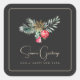 Feche suas cartões de natal, decore presentes ou use em artesanatos sazonais com este adesivo de Natal quadrado. O fundo preto nevado com folhagem de aquarela e ornamentos vermelhos traz um design ousado, mas mínimo, que é festivo sem ser exagerado. Fácil de personalizar com nomes ou saudações para uso versátil de feriados.