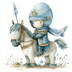 Celebre o seu primeiro aniversário com este adesivo medieval de festa de aniversário, com um cavaleiro bonito no cavalo. Personalize-o com o nome/data de nascimento do seu filho. Convites e acessórios correspondentes podem ser comprados em nossa loja.