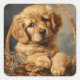 Adesivo Quadrado Ouro Retriever Puppy em um soquete