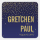 Um na moda, adesivo quadrado moderno, apresenta flechas de brilho de um confete quadrado ouro derramado no corpo deste adesivo azul marinho. Produtos correspondentes disponíveis. Vem com 6 cores: berinjela, marinho, turquesa, preto, rosa e areia. Clique no botão PERSONALIZAR TI para personalizar com seu próprio texto. PARA VER A COLEÇÃO INTEIRA, VISITE O MEU SITE: glamprettyweddings.com. Para perguntas ou solicitações personalizadas, envie um e-mail: cheryl@glamprettyweddings.com/contact. design de "Ouros no Céu" por Cheryl Daniels © 2014.