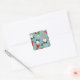 Adesivo Quadrado Padrão de Natal do Elfo Amarelo Verde Verde Branco