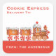 Nossa divertida e colorida etiqueta de Pau Grande do Natal, Pão de Gengala Expresso, apresenta uma ilustração aquosa dos biscoitos Gingerpão na forma de um trem com glacé branco de baunilha, sotaques de goma, locomotiva de pão de gengibre e rodas feitas de doce de menta listrado vermelho e branco. O texto diz "Cookie Express" "Delivery To:" e pode ser atualizado com seu próprio texto personalizado para fazer um adesivo personalizado para presentes de feriado, favorecer bolsas e pacotes.