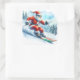 Adesivo Quadrado Papai Noel esquiando montanhas nevadas no inverno