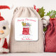 Uma maravilhosa aquarela com seu nome familiar e desejos de Natal junto com Papais noeis cheios de presentes e brinquedos. Coloque um adesivo especial no seu presente de Natal.