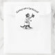 Um adesivo com Parabéns em letras desenhadas à mão e um desenho preto e branco de um gato num casaco e rabos de cima, inclinando seu chapéu de cima. Personalize-o com seu próprio texto de saudação e escolha de estilos de inscrição.