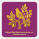 Um encantador adesivo festivo com uma foto de um perdiz em uma pera, com uma aparência falsa de ouro, sobre fundo burlando. Abaixo, encontram-se as palavras da primeira linha da famosa canção de Natal, "Os Doze Dias do Natal". Estes adesivos sazonais são um na moda para além do seu papelão de férias, para convites, envelopes ou projetos de artesanato.