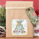 O design do produto apresenta um ursinho de pelúcia com um presente. Este desenho original de brinquedo animal com texto personalizado faz obrigado giro e único para você fazer anos, chás de fraldas e muito mais!