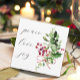 Um simples design com uma aquarela de um buquê de bagas sagradas e sortidos verdes de inverno e amor pela paz e alegria na tipografia escrita à mão. Personalize com o nome da sua família.