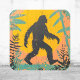 Um adesivo de Pé Grande quadrado. Uma silhueta de Pé Grande em uma floresta estilizada.